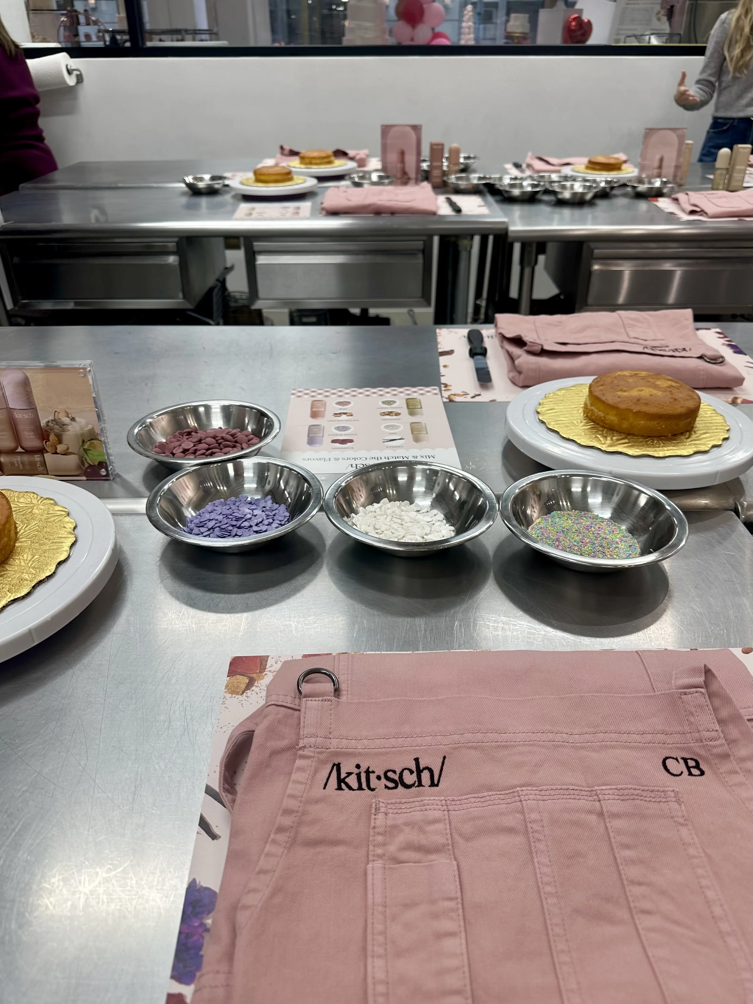 Four Hands Embroidery partnered with KITSCH for a Valentine’s Day brand activation in NYC, creating custom embroidered aprons for guests at a cake decorating event celebrating the launch of KITSCH’s Hair & Body Perfume. Each apron featured personalized initials and the KITSCH logo, adding a unique, one-of-a-kind touch. With onsite embroidery inspired by the perfume’s dreamy scents, the event blended customization, creativity, and connection—highlighting how custom embroidery can elevate any brand experience.