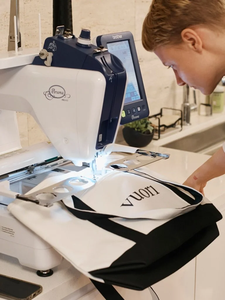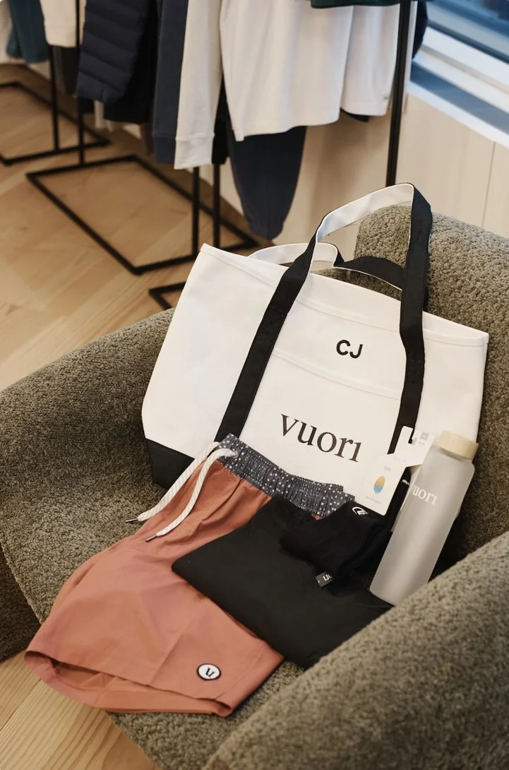 Each guest received a one-of-a-kind, custom embroidered tote featuring bespoke designs created live by the Four Hands Embroidery team. These totes were then filled with an array of Vuori products, combining utility with luxury in a way that only personalized embroidery can achieve.