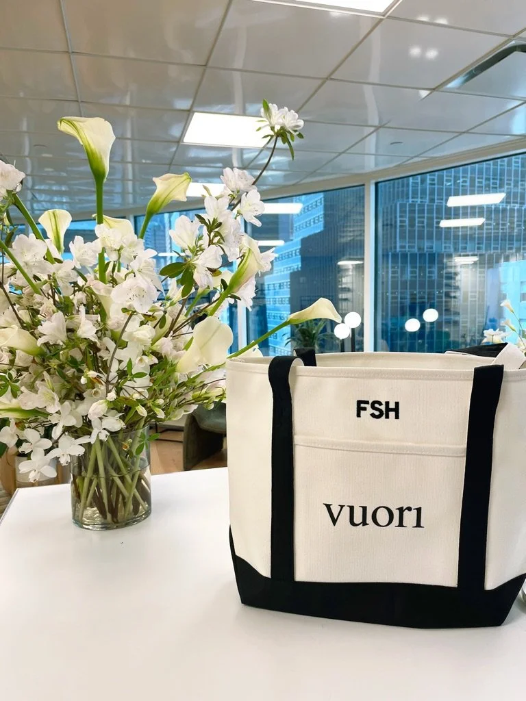 Four Hands Embroidery recently had the pleasure of providing custom embroidery for Vuori’s exclusive press preview event in New York City—a standout example of how onsite embroidery can enhance a brand activation with a unique and personal touch. Hosted in an expertly curated suite at the iconic WSA building, the event offered sweeping views of NYC’s skyline, premium coffee from a mobile café cart, and the latest from Vuori’s athleticwear collection—all wrapped in an unforgettable guest experience. As attendees browsed Vuori’s new designs—rooted in the California coastal lifestyle and made with high-performance technical fabrics—they were invited to customize their own tote bags.