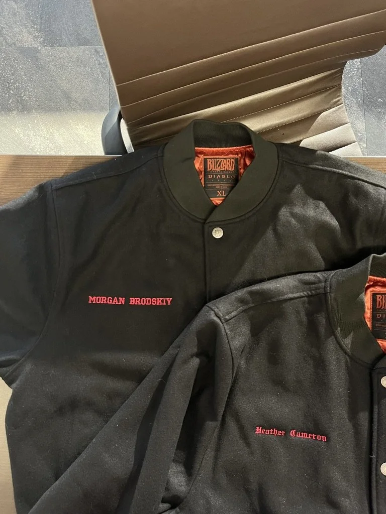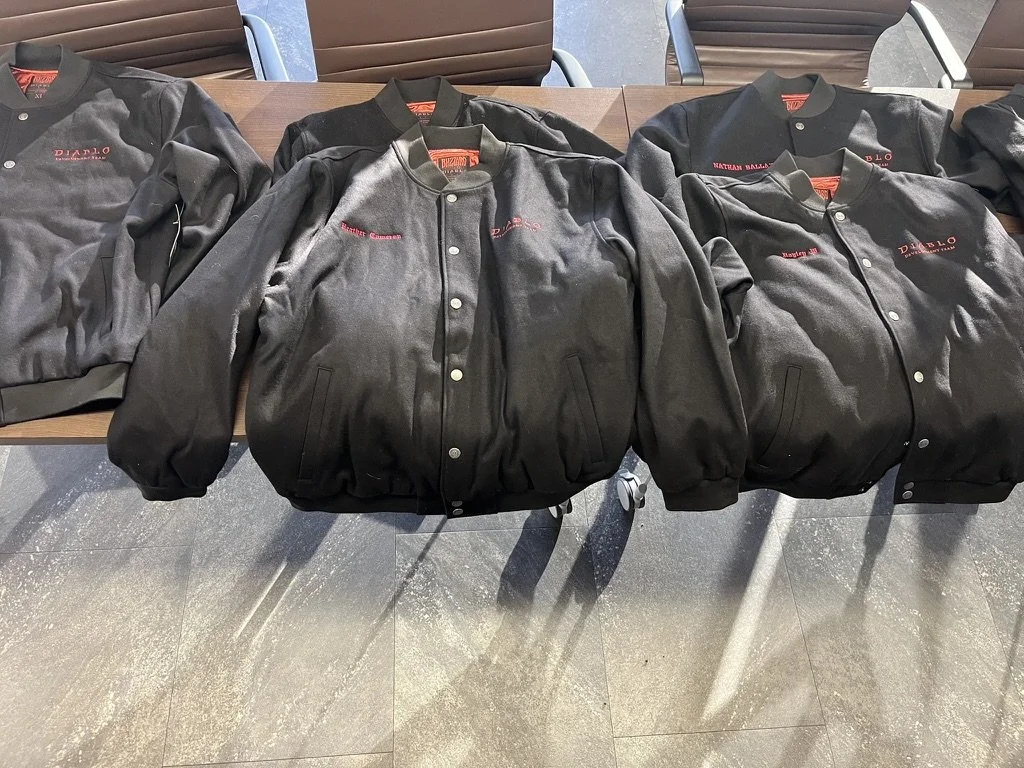 The event took place in Blizzard’s stunning office, a space designed to inspire both work and play. From arcade machines, ping pong tables, and console gaming lounges to an in-office gym, life drawing classes, and a fully stocked kitchen, the environment reflected the same immersive quality as their legendary games. And on this particular day, it also featured the hum of custom embroidery machines, personalizing Diablo varsity jackets for employees as a lasting memento of the celebration.